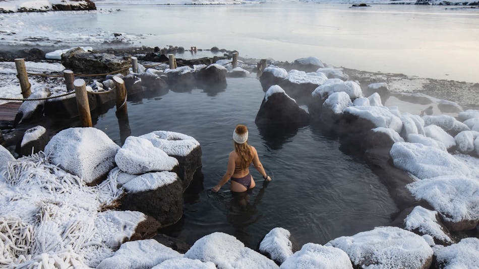 The Hvammsvík Hot Springs is the latest bath restort to open near Reykjavík; the prestine location overlooks the quiet Whale Fjord