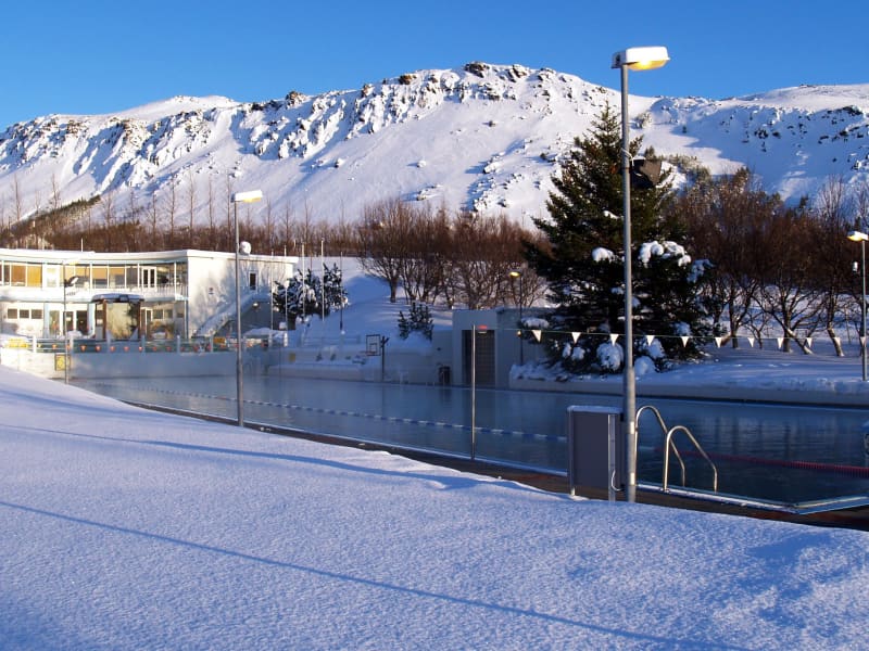The Thermal bath Laugaskarð is renowned for its lovely setting as well as excellent facilities, including hot pots, whirlpools, a natural sauna and a fitness center. The pool is heated with steam coming directly from the ground and because of this many consider the water to be good for your health. The thermal bath is open all year round and was, with its 50 m length, for years the largest pool in Iceland.