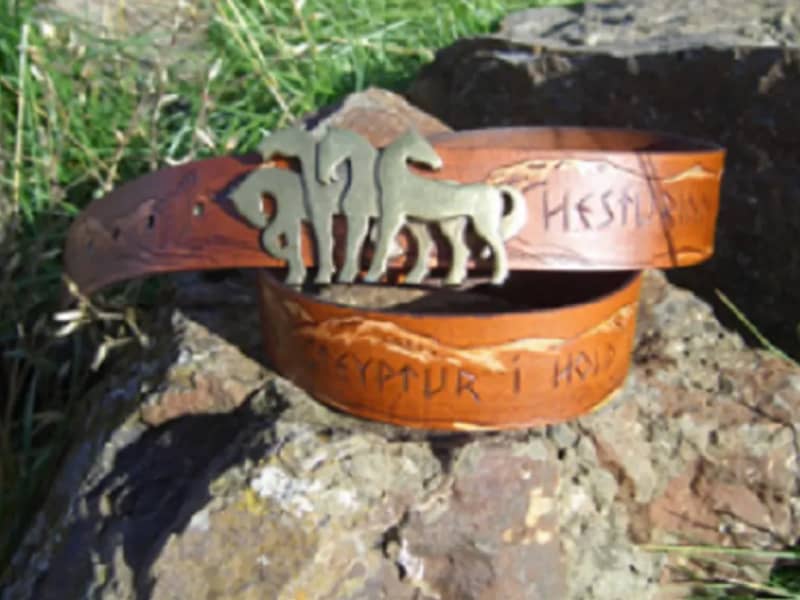 Local hand craft for sale. Natural Icelandic materials from Skagafjörður, leather, fish leather, hides and wool.